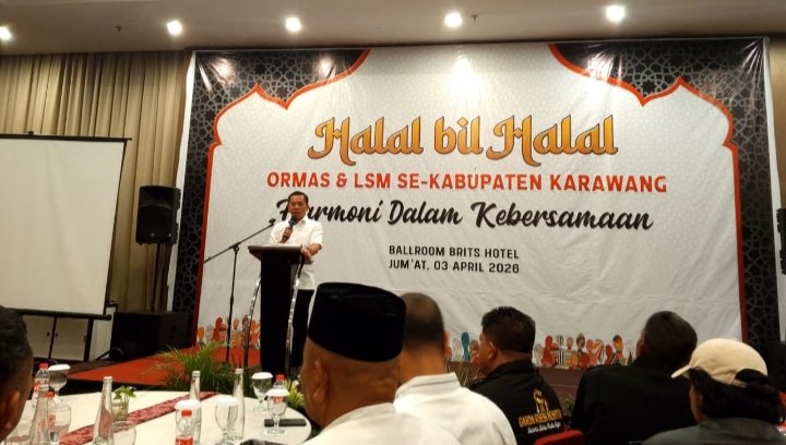 Pernyataan tersebut disampaikan dalam suasana kegiatan Halal Bihalal Ormas dan LSM se-Kabupaten Karawang yang berlangsung di Brits Hotel Karawang, Jumat (04/04/2026).