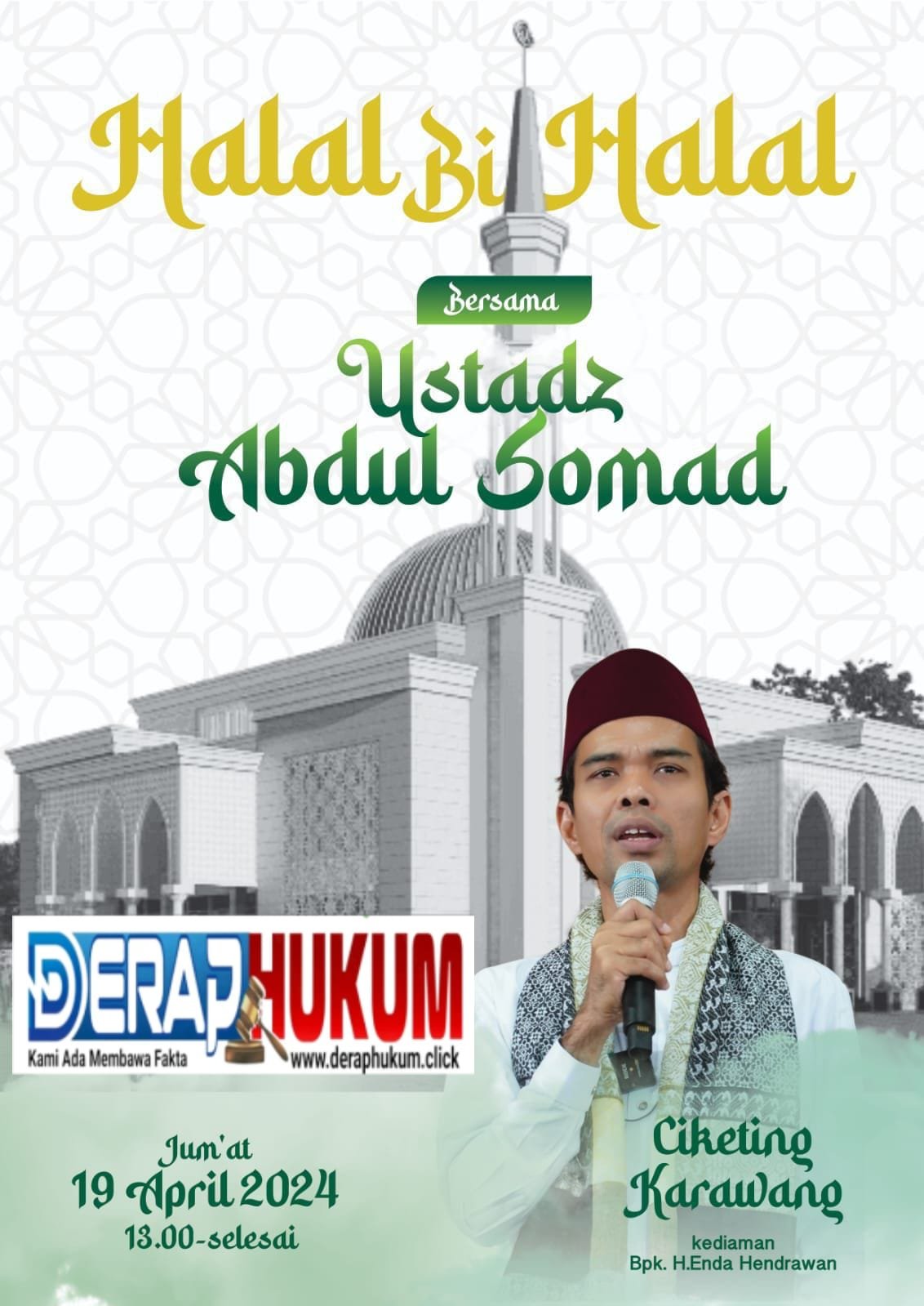 Acara Halal Bihalal dan Milad Tasyakuran ke 50 H. Enda Hermawan yang di laksanakan tersebut mengundang Mubaligh dan penceramah ternama di nusantara Ustadz Abdul Somad yang memberikan Tausiyah Islamiyah.