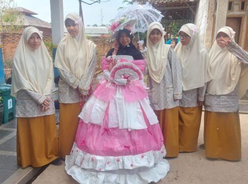 Kegiatan pameran P5 ini melibatkan siswa dan siswi kelas 7 dan 8 anak-anak kerja kelompok dari bahan plastik dan kardus buat dijadikan dress.
