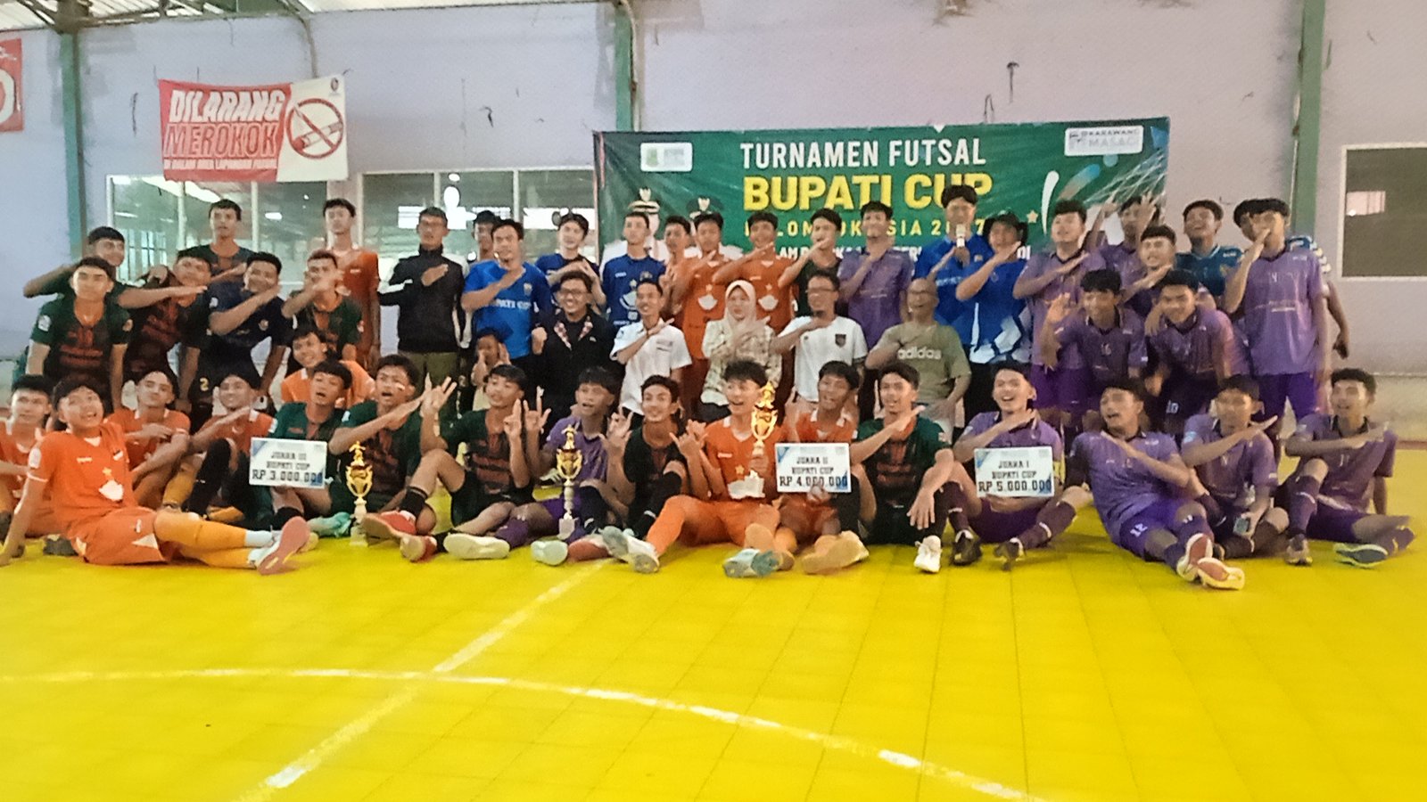 Di turnamen futsal Bupati Cup 2025, klub Fantatista keluar sebagai juara setelah di partai final mengalahkan Bintang futsal dengan skor 3-1. (***).