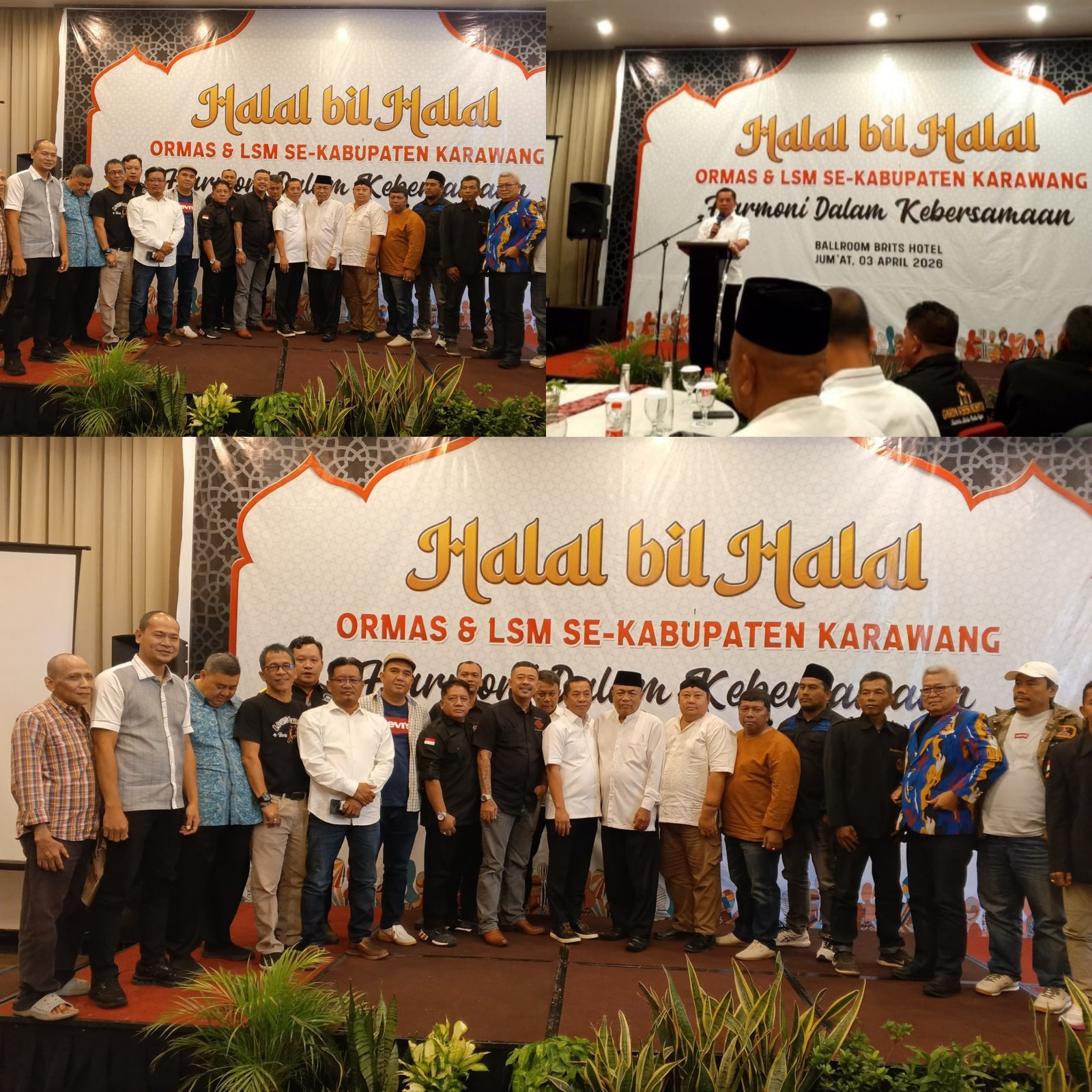 Karawang, otentiknews.click — Suasana hangat penuh kebersamaan mewarnai kegiatan Halal Bihalal organisasi masyarakat (ormas) dan lembaga swadaya masyarakat (LSM) se-Kabupaten Karawang yang digelar di Brits Hotel Karawang, Jumat (03/04/2026).