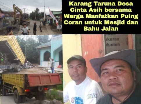 Karawang, otentiknews.click – Karang Taruna Desa Cinta Asih bersama warga memanfaatkan puing-puing coran jalan provinsi untuk kepentingan masyarakat. Puing-puing tersebut digunakan untuk perbaikan mesjid dan bahu jalan Desa Cinta Asih.