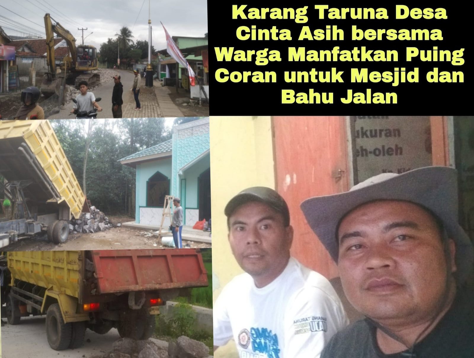 “Benar, puing-puing coran jalan provinsi tersebut kami gunakan untuk keperluan masyarakat. Kami ingin membantu masyarakat dengan memanfaatkan puing-puing tersebut untuk kepentingan bersama,” ujar Riyan, Ketua Karang Taruna Desa Cinta Asih.Â