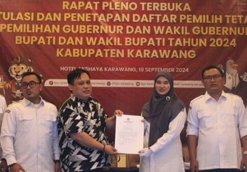 Karawang, otentiknews.click – Komisi Pemilihan Umum (KPU) Karawang telah melaksanakan Rapat Pleno Terbuka Rekapitulasi dan Penetapan Daftar Pemilih Tetap (DPT) Pemilihan Gubernur dan Wakil Gubernur Provinsi Jawa Barat serta Bupati dan Wakil Bupati Karawang Tahun 2024,di FrontOne Akshaya Hotel, Telukjambe Timur, Kabupaten Karawang, pada Kamis (19/09/2024) malam.
