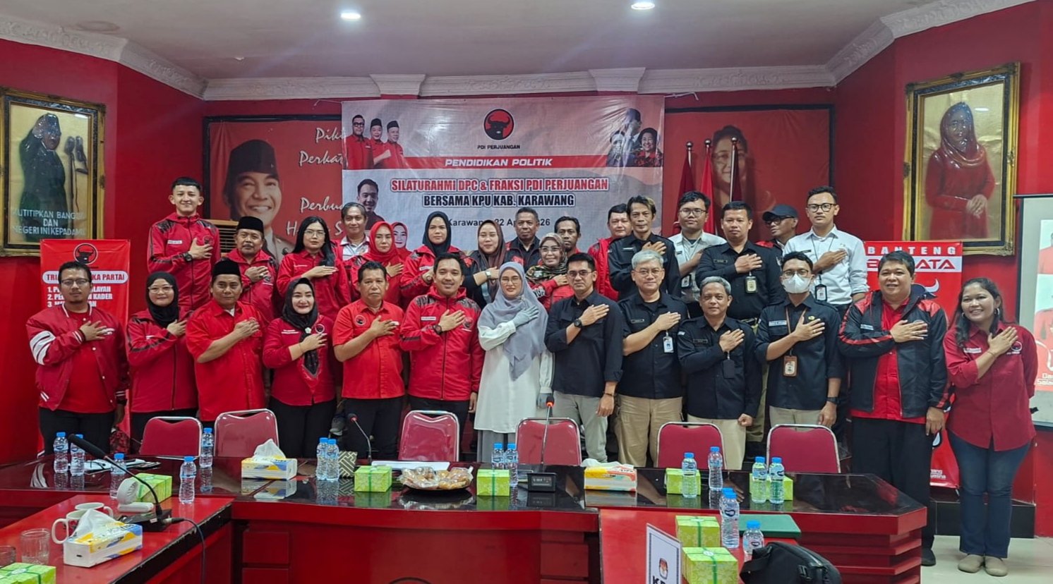 Karawang, otentiknews.click – Menjelang tahapan Pemilu (Pemilihan Umum) mendatang, Dewan Pimpinan Cabang (DPC) PDI Perjuangan Kabupaten Karawang menggelar silaturahmi politik sekaligus koordinasi kelembagaan bersama Komisi Pemilihan Umum Kabupaten Karawang, Rabu (22/04/2026).