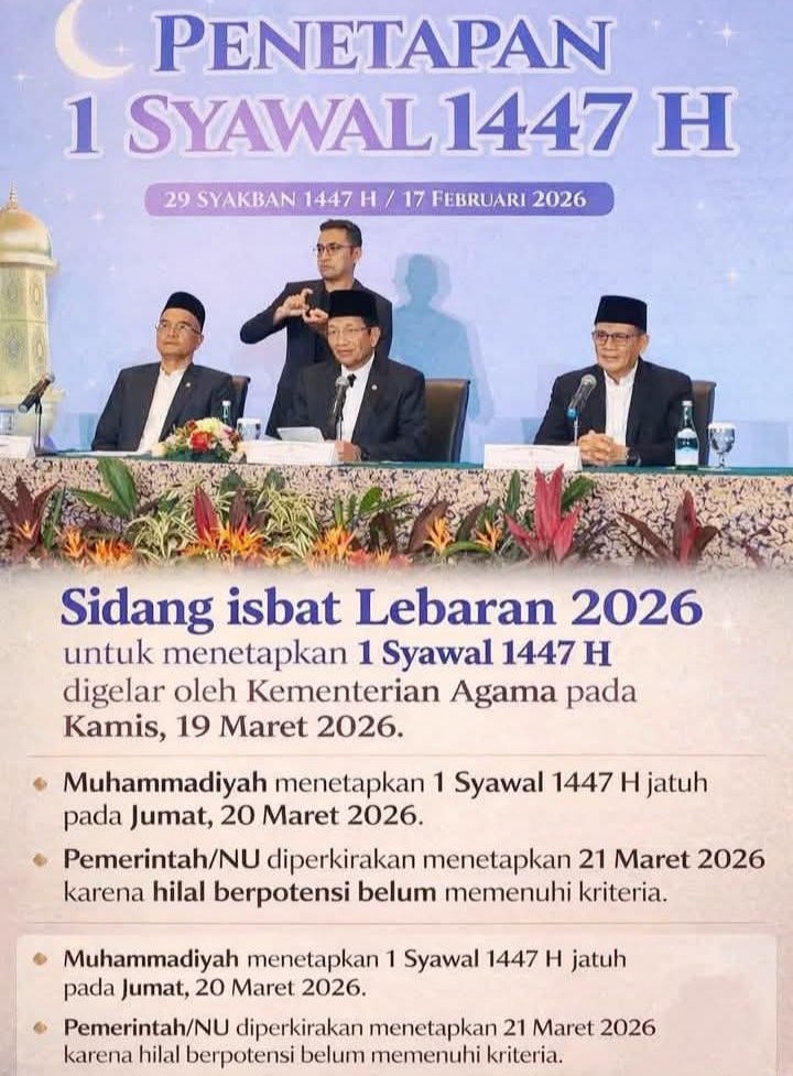 Dengan keputusan ini, umat Islam di Indonesia yang mengikuti ketetapan pemerintah akan melaksanakan Salat Idul Fitri secara serentak pada Sabtu, 21 Maret 2026.