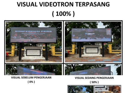 “Seperti pembangunan pondasi, pemasangan rangka, hingga pengoperasian penuh. Kini videotron sudah berfungsi 100 persen dan siap digunakan untuk mendukung pelayanan informasi publik,” jelasnya.