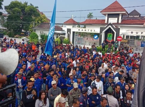 Karawang, otentiknews.click – DPC SPSI Kabupaten Karawang bersama sejumlah organisasi serikat buruh yang tergabung dalam Koalisi Buruh Pangkal Perjuangan (KBPP) menggelar aksi unjuk rasa menuntut Pemerintah RI untuk menjalankan putusan Mahkamah Konstitusi (MK) No. 168/PUU-XXI/2023 dan menuntut kenaikan upah sebesar 25% berdasarkan Kebutuhan Hidup Layak (KHL) Kabupaten Karawang tahun 2024, di depan kantor Pemda Karawang, Rabu (13/11/2024)