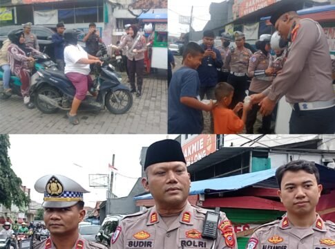 Pembagian takjil gratis dipimpin langsung oleh Kasatlantas Polres Karawang, AKP Sudirianto, S.H., M.M beserta jajarannya.