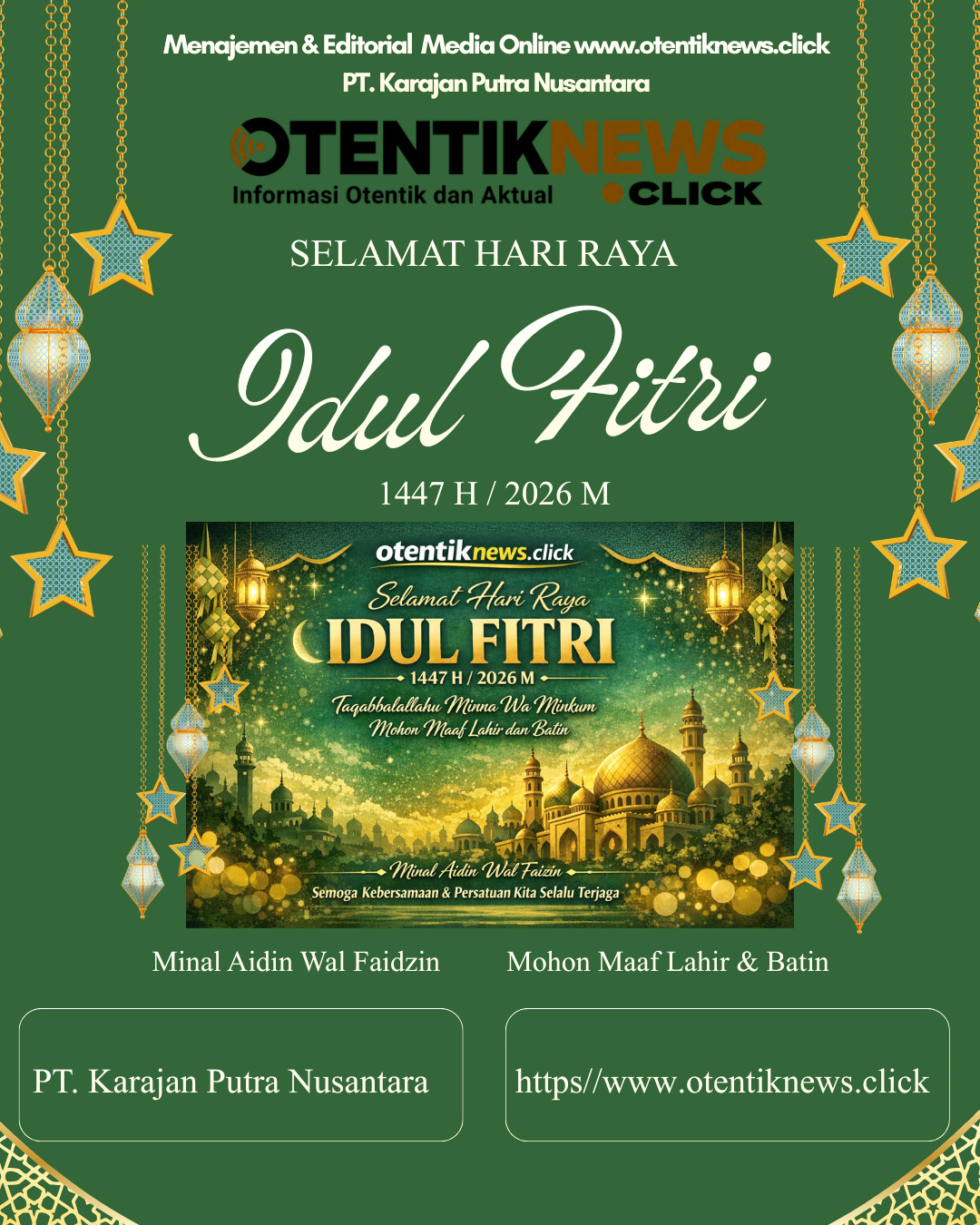 Karawang, otentiknews.click — Dalam suasana penuh khidmat dan kebahagiaan Hari Raya Idul Fitri 1447 Hijriah, segenap jajaran manajemen, editorial, serta wartawan media online otentiknews.click menyampaikan ucapan selamat kepada seluruh umat Muslim di Indonesia.